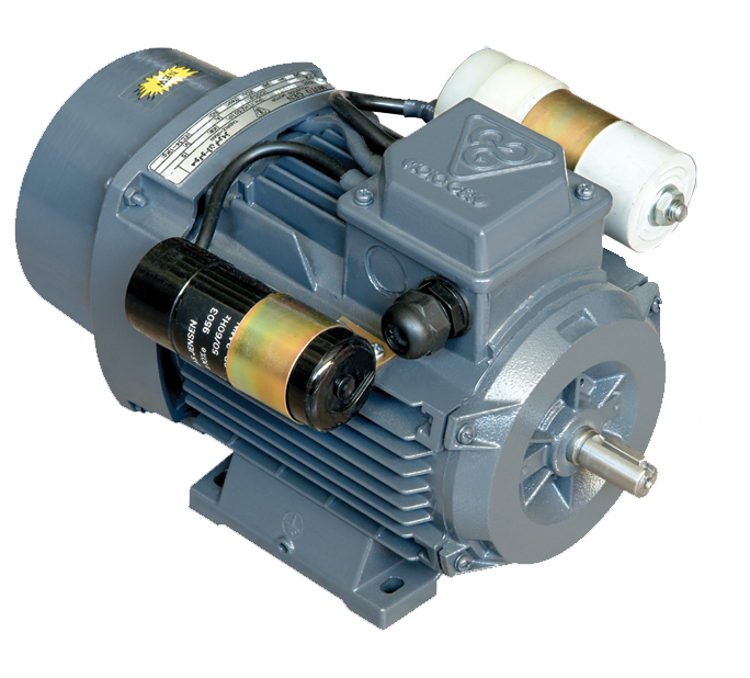 الکتروموتور تک فاز خازن دائم الکتروژن از پوسته آلومینیومی ساخته شده است و در مواردی استفاده می شود که الکتروموتور بدون بار راه اندازی شده و سپس به زیر بار میرود.