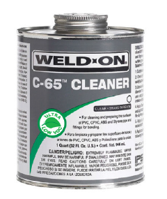 کلینر  ولدان (C-65™ Weld/on Cleaner)جهت پاک کردن روغن و گریس و آلودگی و گرد وخاک از سطوح لوله و اتصالات PVC، CPVC، ABS و STYRENE  برای استفاده قبل از چسب کاری لوله و اتصالات توصیه می شود.