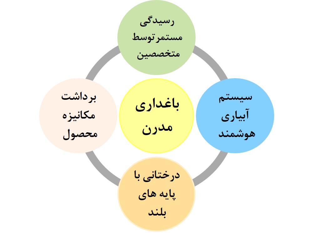 در حال حاضر با توجه به حرکت دنیا بسمت احداث باغ های مدرن، تصمیم مدیریتی صحیح پیشروی باغداری در ایران بسمت توسعه زمین های زیر کشت بسمت باغداری پیشرفته و استفاده از سیستم های نوین آبیاری و رسیدگی مستمر بمنظوردستیابی به بالاترین بازدهی و کمترین میزان خسارت وارده به زمین های زیر کشت است.